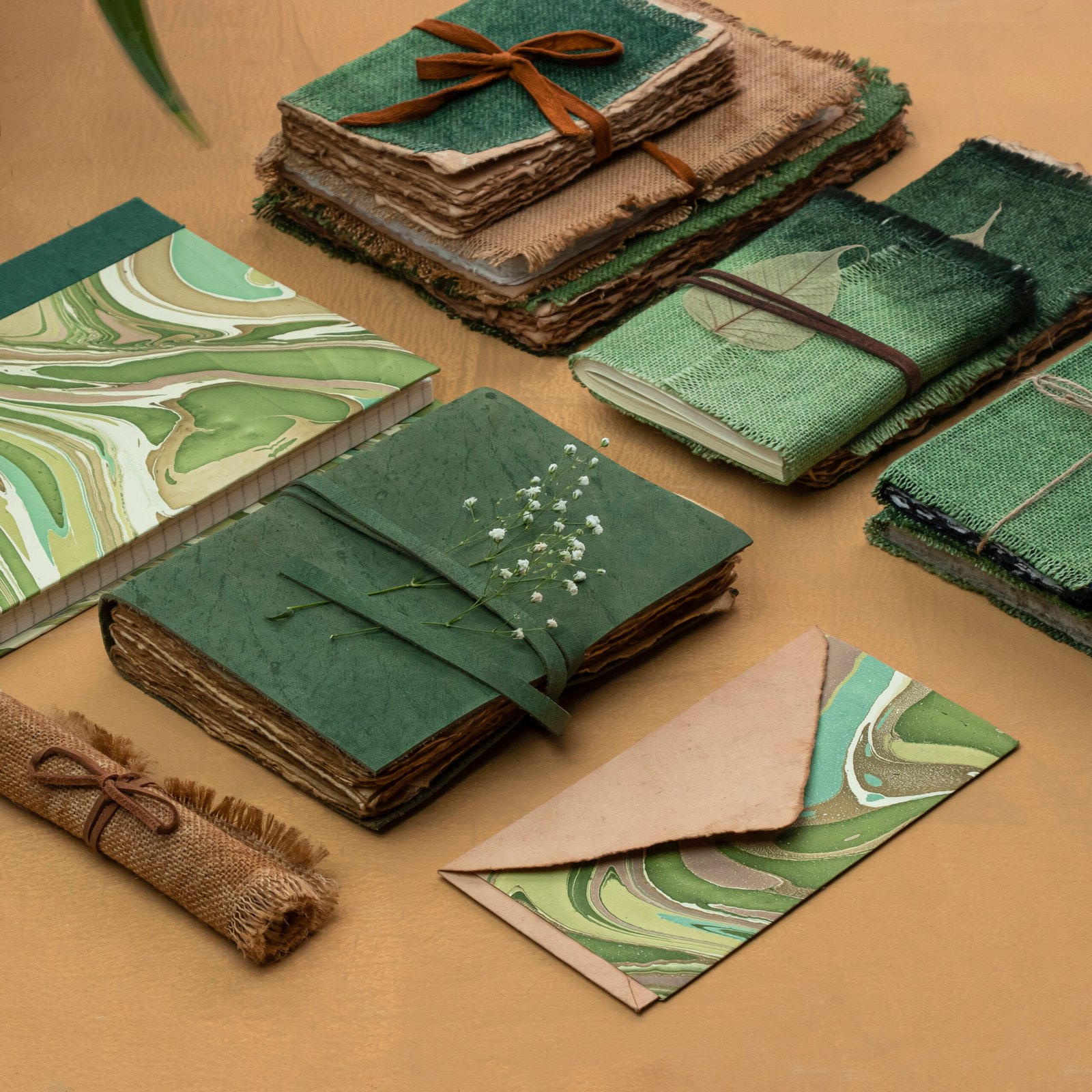 We offer a wide range of handmade paper products including journals, notebooks, gift wrapping papers, decorative boxes, paper bags, calendars, photo albums, and custom stationery items.