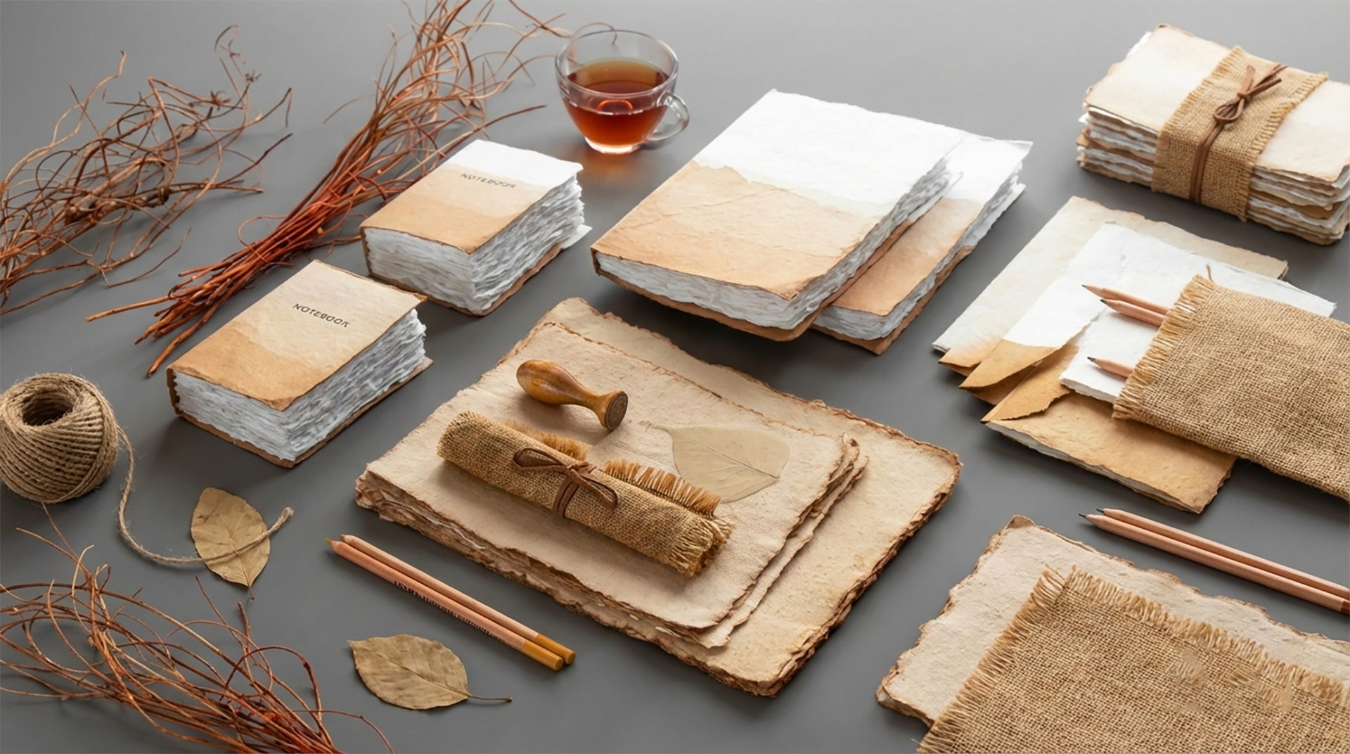 We offer a wide range of handmade paper products including journals, notebooks, gift wrapping papers, decorative boxes, paper bags, calendars, photo albums, and custom stationery items.